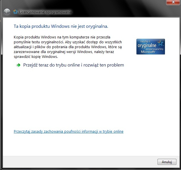 [windows 7] ta kopia systemu windows nie jest oryginalna