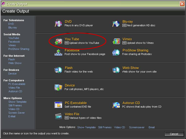 Jeśli zakończyliśmy pracę nad tworzeniem pokazu, na pewno będziemy chcieli się nim pochwalić szerszemu gronu. Doskonałym pomysłem jest zamieszczenie go w Internecie. ProShow Producer pozwala w łatwy sposób przesłać nasz pokaz bezpośrednio na YouTube, Facebook, czy też Vimeo. Oczywiście podstawowym warunkiem jest posiadanie konta na którymś z wymienionych serwisów.