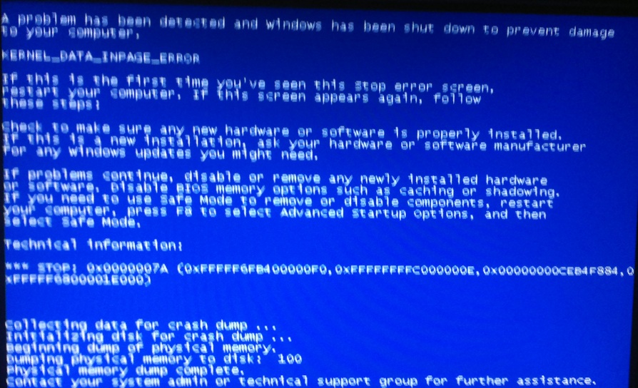 *** STOP: 0x0000007A (0xFFFFF6FB400000F0,OXFFFFFFFC000000E,0X00000000CEB4F884,0XFFFFF6800001E000)